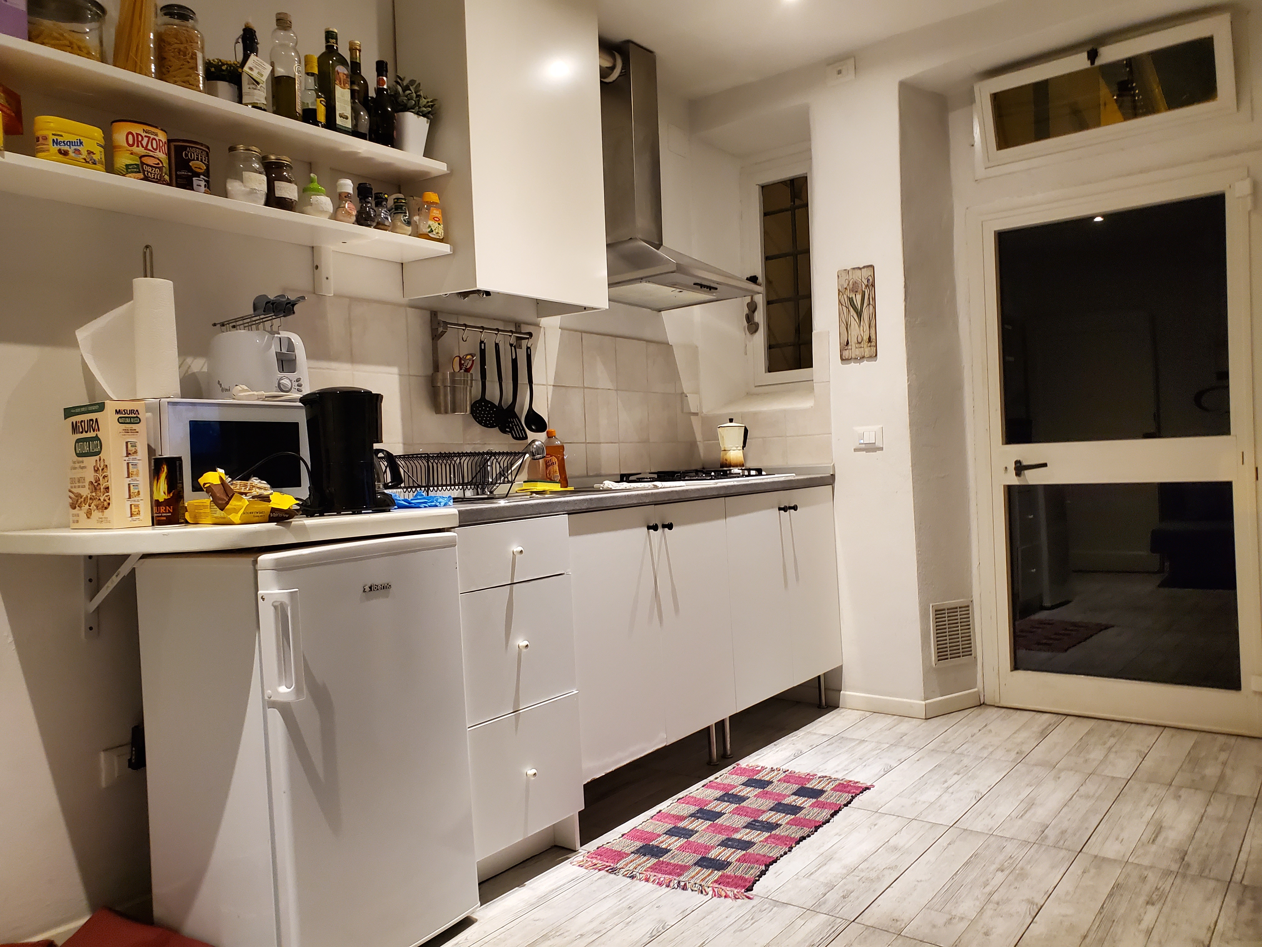 I was so surprised because this never happened to me before. Usually, I have to struggle with my luggage going up at least one flight of stairs. However, this time, Matteo was there promptly to greet me and assisted with taking my belongings to the ground level apartment. He was very kind and immediately spoke in Italian to me because he knew I was trying to learn. He was very courteous and encouraging as I did my best to converse in his language! Matteo took his time explaining about the apartment and local stores, tours, etc. I was happy to listen to him talk about his personal experience of living in the United States for several years as a musician. There was even a lovely bottle of wine on the table in the kitchen. This is why I love Airbnb .com for finding places to stay when traveling! They always seem to be true to their ratings and Matteo and Monica were rated highly on the website!