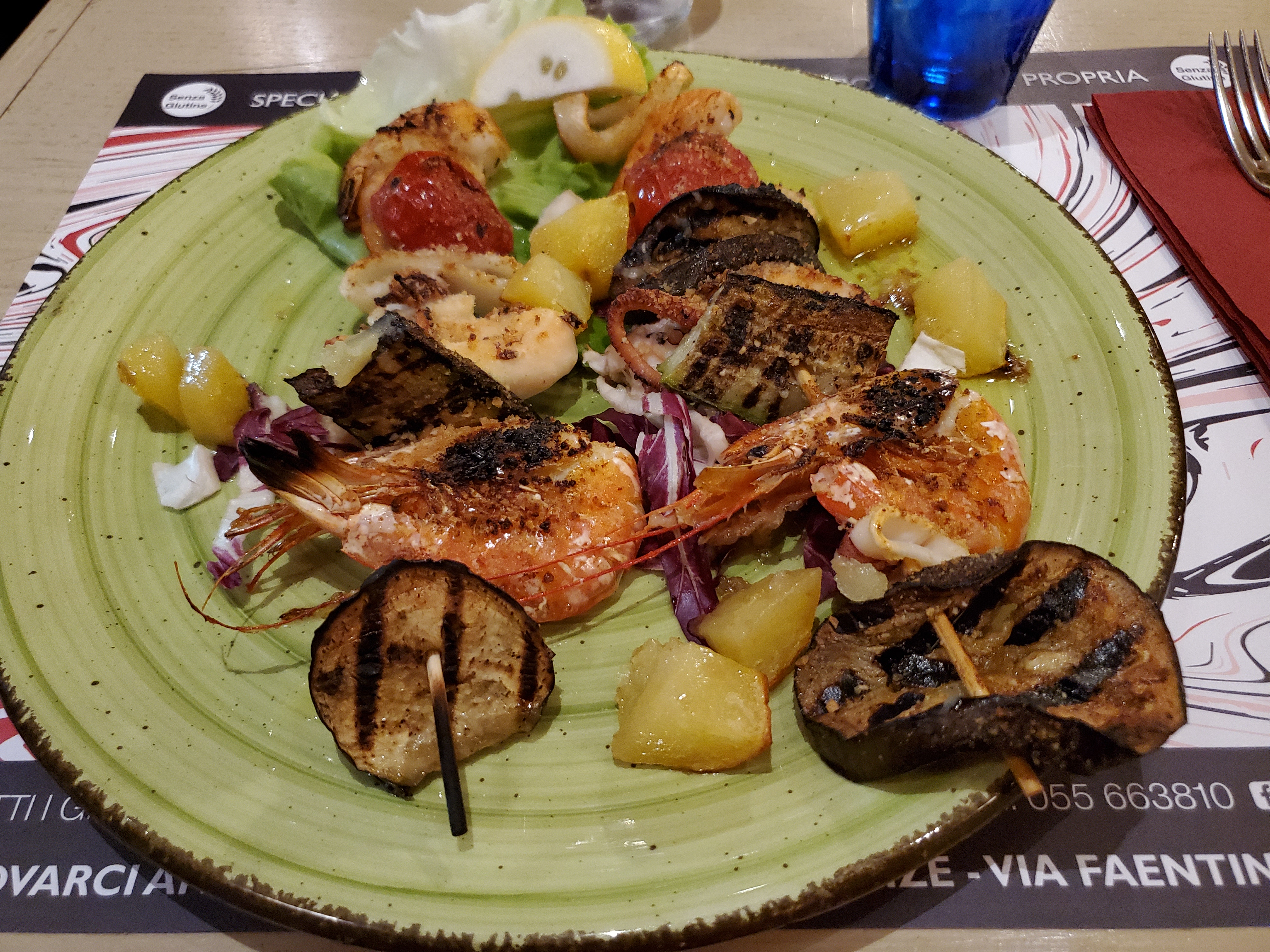 Matteo told me there was a convenient place to eat, which was just a few steps away from the apartment. Of course, this restaurant was named after the street of La Luna. I enjoyed some delicious meals there and even a take away pizza one night. The wait staff was delighted to make my acquaintance and would give me two menus every time I visited – one in English and the other in Italian! I enjoyed talking to the waitresses and they were delighted to pose in photos for me. In the photo below, the manager was making Corina, Kejsi, Jessica and I laugh. Everyone laughed even harder when I said, “Che cosa fai?!” (What are you doing?)