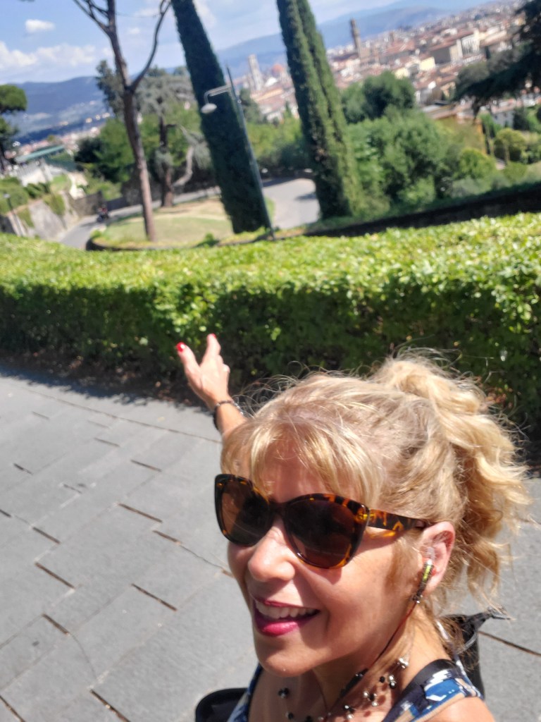 As I returned home from my trip during the second week of August 2019, I felt disappointed in not being able to locate a note with contact information for a amicable young lady I met one day on my way back from the San Minato Al Monte church, which is located near the Piazzale Michelangelo. How I met Lucia was quite coincidental. As I trekked in the hot sun through many streets I noticed a quaint souvenir shop that looked a bit different from the others. While eyeing various temptations in the store (Tough for me to control those shopping urges when traveling!) I heard a friendly voice emerge from the back of the store. Seated with her head barely peaking above the sales counter was a petite, pretty young lady with a contagious smile. I quickly introduced myself in Italian and her face lit up. Finding out where I was from sparked a conversation about her previous visits to the United States to see a friend. She proudly told me that her name, Lucia, meant “the light” and invited me to stay with her family the following year. I was amazed at such a gesture of friendly hospitality! However, when I returned to the U.S., I gave up hope of ever seeing her again – until one night while I was perusing my Facebook travel page.