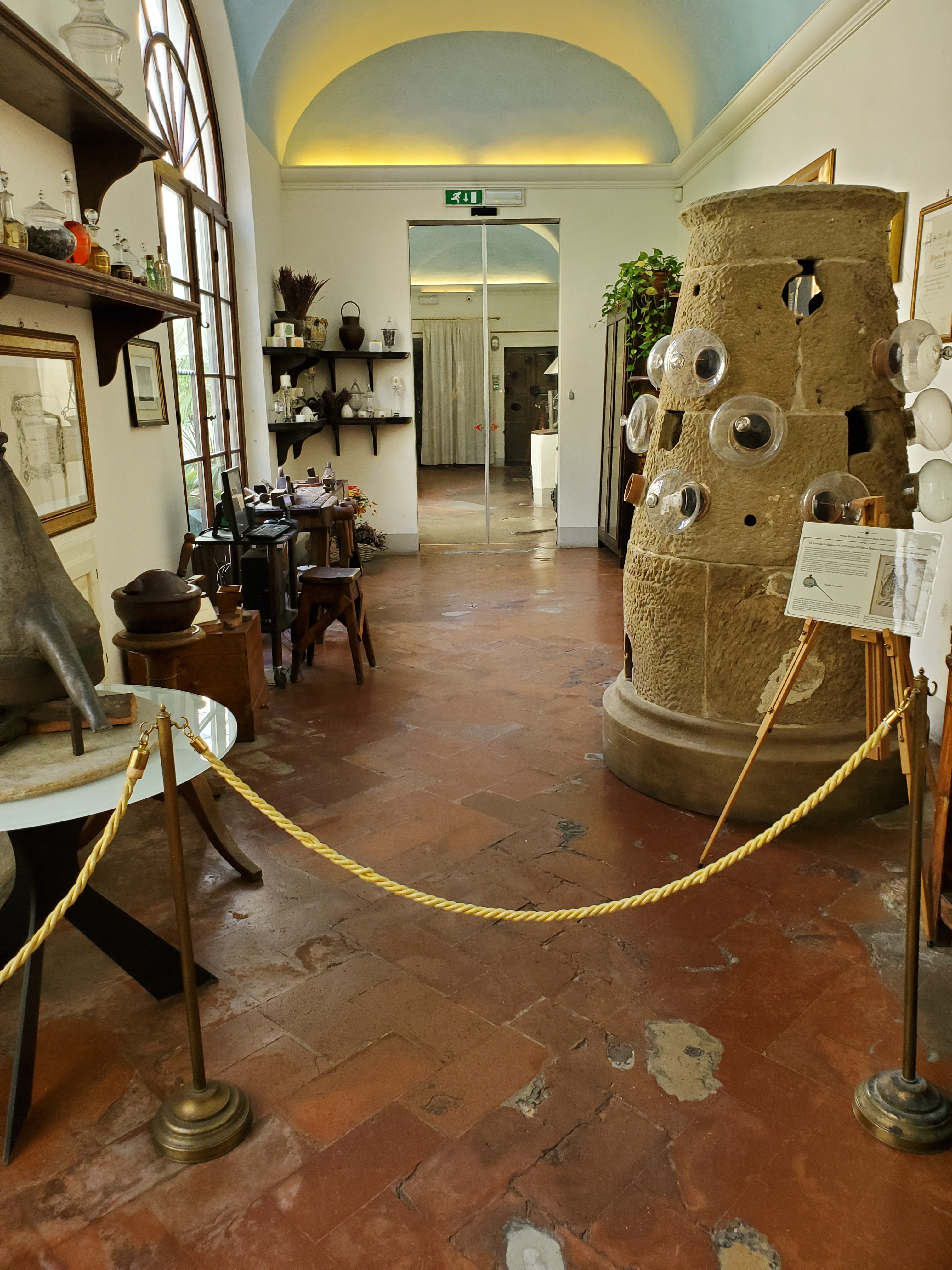 As I entered the pristine doorway, I was delighted to see colorful frescoes adorning the walls and ceilings. Further down a short hallway I entered a large room of nicely set up counters with professional employees assisting customers with specially made perfumes, soaps, and other types of skin products. I couldn’t believe the amount of rooms to browse in, some with large glass cases displaying many different types of products. Another surprise was a free museum filled with interesting antiques and even a quaint tea room!