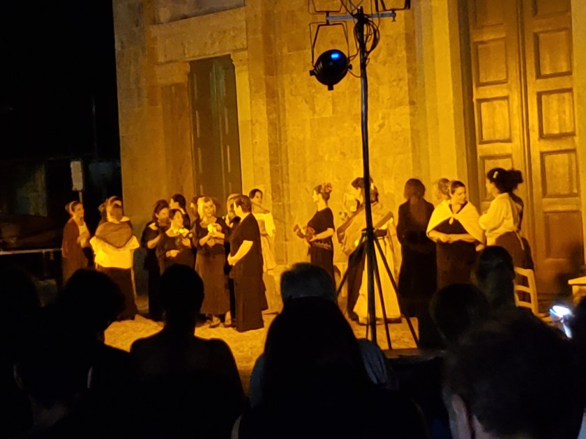 One of my favorite parts of this trip was traveling by train to see an opera located in San Casciano, a small village in the commune of Casciano within the province of Pisa. I always wanted to see an opera performed in Italy and was lucky to find an online advertisement for Cavalleria Rusticana, performed by professional singers as a special benefit for the Parish Church of Saints Ippolito and Casciano and free to the public. When I researched my train tickets, I discovered it was about an hour and a half from Florence. However, when I arrived at the Santa Maria Novella train station, I found out I needed to purchase another ticket in order to take two trains! The taxi driver, Enzo, arrived in a small black town car and was very helpful and kind. He exclaimed to me that he did not know there was such a great show in his village and refused to charge me any money for the ride!