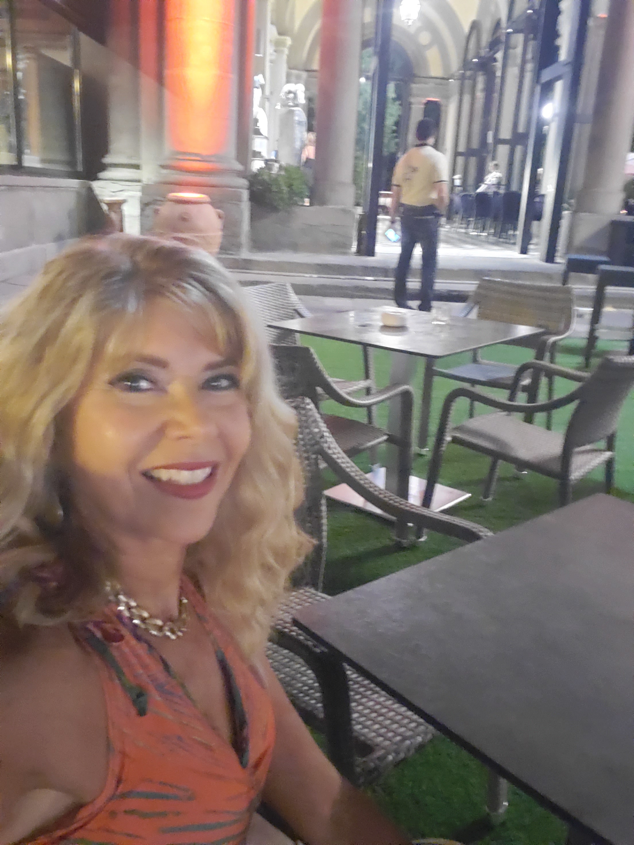During my first solo trip to Florence, I met Martina, a lovely receptionist who worked at the front desk of the Antica Torre Via Tournabouni. This lovely historical tower seated in the central part of the city is a wonderful treat for anyone who wants to experience a gorgeous room for an overnight stay or longer. It is also available for hosting business conventions, and other special events. Martina’s kind and friendly personality made it easy for me to connect with her . Her excellent command of the English language, patience with my stumbling Italian words, and contagious smile made my first visit relaxed and memorable. When I returned in August 2019, Matina greeted me with open arms and her coworker offered to take quite a few photos of us together. To this day we continue to communicate through Instagram! I plan to visit her again this year.