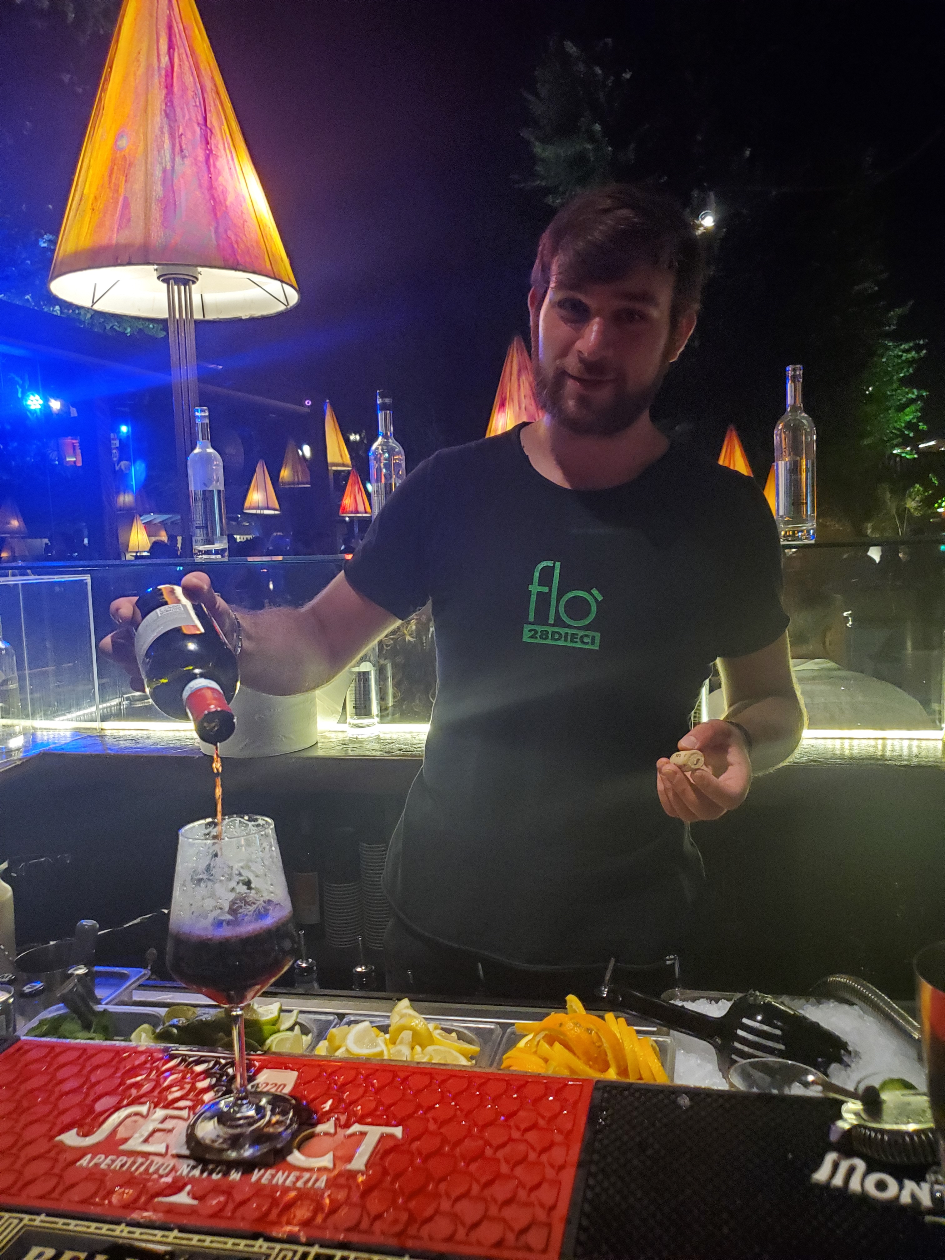 After asking the bartender to smile for a photo (He was one of the few people I encountered who was not very sociable.) I chose to sit across from the DJ on a white bench in what appeared to be a special seating area. There were so many security men around that I never felt concerned for my safety. The rules in Flo are very strict regarding anyone who has ideas about drinking too much. I enjoyed the music and watching groups of people in nice dressy outfits dance the night away.