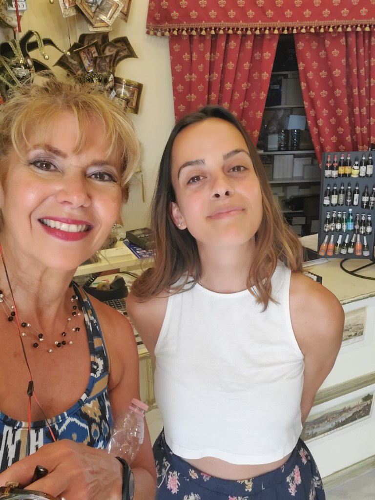 Laurie and her coworker were very patient and accommodating as I took my time to choose from what seemed to be an endless selection of earrings, necklaces, bracelets, and so much more, packed into this quaint store. (Here is a link to the website for you to window shop from the comfort of your home! https://www.coloursandbeauty.it/) The next time you are able to shop in Florence, put the name of this store in your Google search and follow the walking map. You won’t be disappointed! Laurie loves interacting with customers and speaks English very well.