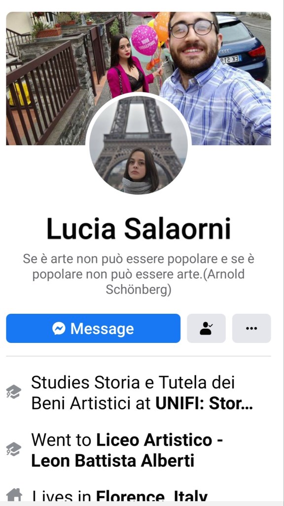 I glanced through the “likes” for one of my posts and noticed one profile that resembled Lucia, with of course, the same name. Seriously? What are the odds? I immediately recognized her facial features and I became so excited! (Like a detective finding a missing person!) I knew that infectious smile anywhere! I messaged her and received a quick response. It was indeed the Lucia I had met in Florence! Our conversation on Facebook messenger gave me such a warm feeling. At this time, Lucia does not know if the store she worked in will reopen. However, she is studying art history in college and will continue to complete her studies once schools reopen in Italy. I can’t wait to see her again, hopefully, this August 2020!