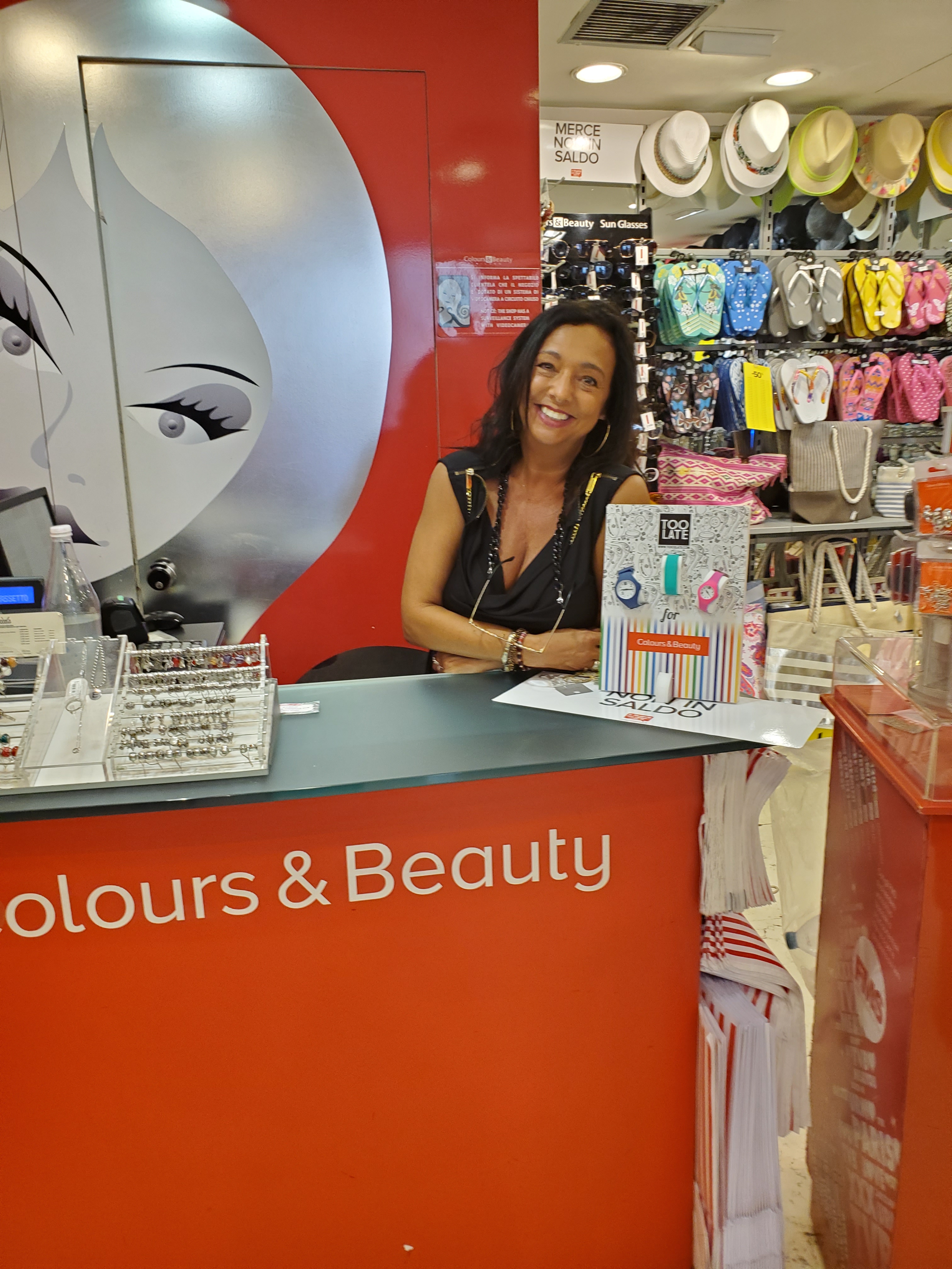 Shopping in Florence can be quite overwhelming at times! Where to go..how much time there is……to look for jewelry, clothes, souvenirs, etc., etc. especially when you are not sure where to go. If you are not on a tour and being rushed around like a herd of cattle, it is relaxing to take a day to browse around the Ponte Vecchio and the center of Florence near the Duomo and Giatto’s tower. My addiction to costume jewelry led me to a discovery of the Colours & Beauty store located along one of the main streets coming from the center of the city. Not only does the store jump out at you with bright “colours” and a tempting glittery array of pretty jewelry, but the smiles radiate from the store employees.